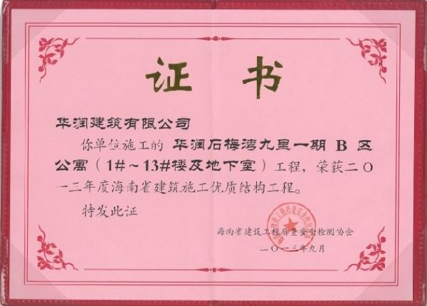 2013年度海南省建筑施工优质结构工程