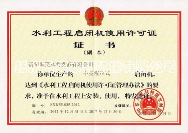 资质名称: 小型液压启闭机 |