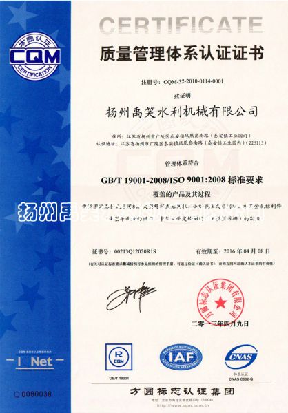 | 持证单位: 扬州禹笑水利机械有限公司 |
