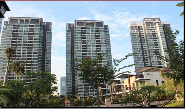 工程特点:本工程由4栋地上28层地下1层高层住宅楼建筑组成,其中地下室1.35万㎡。建筑物外型呈椭圆形,总建筑高度94.30m,第27、28层为预应力楼板。包括结构、水电安装、公共区域精装修、地下室顶板上的绿化工程。工程总造价约人民币1.089亿