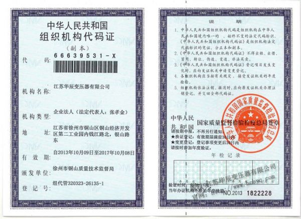 | 持证单位: 江苏华辰变压器有限公司 |